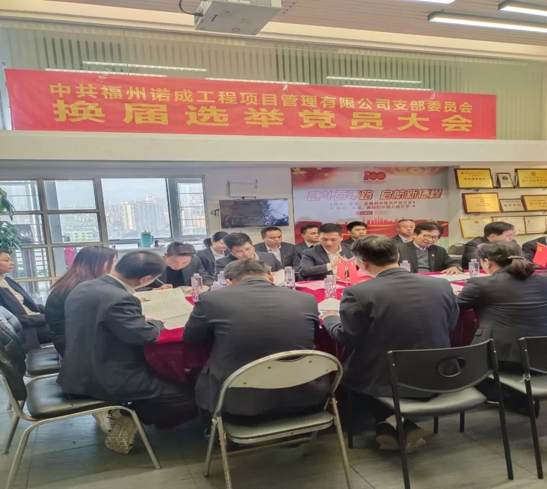 2021年12月18日,福州諾成公司黨支部召開換屆選舉大會,選舉產(chǎn)生了新一屆支部委員會委員。會議由組織委員兼紀(jì)檢委員,公司總工程師徐禮盛同志主持。